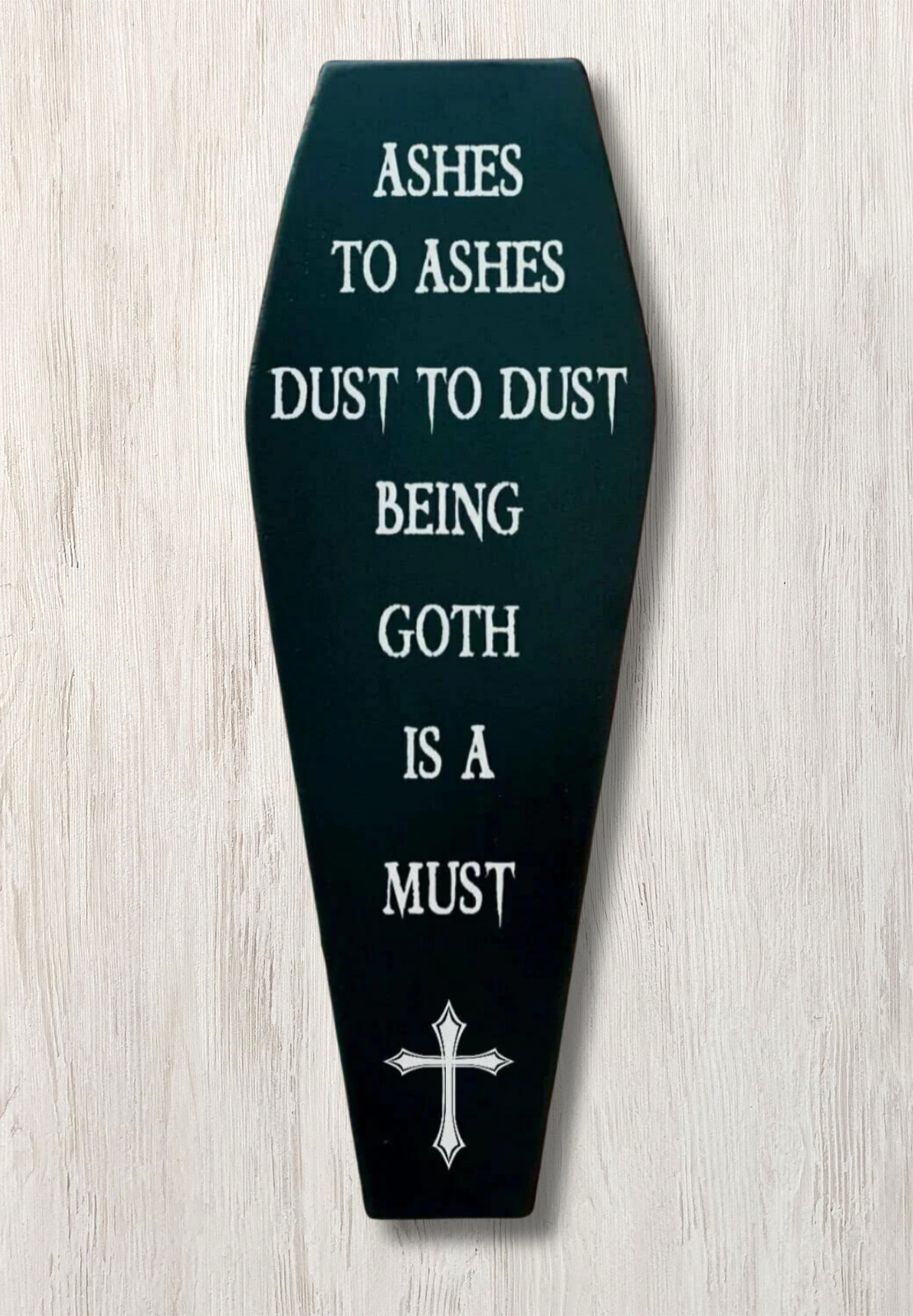 Hanging clip on the back to display beautifully on your gothic wall. Let this Gothic Coffin Plague be centre of attention.